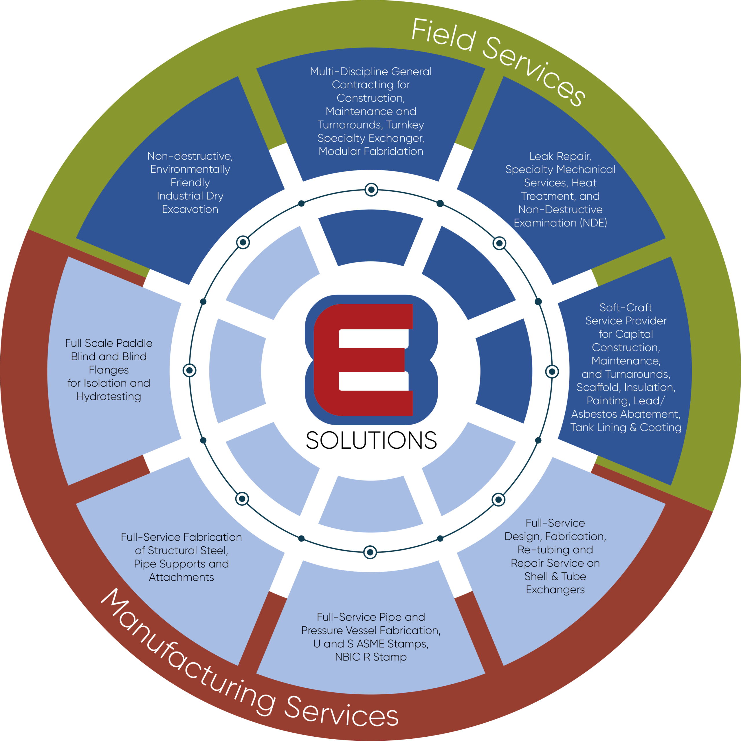 Our customers achieve high-performance construction, maintenance, and turnaround success which lowers cost and optimizes production. They achieve this because of our E8 Solutions, REP Methodology, our safety record, our skilled and experienced people, and long-term partnerships.